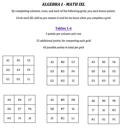 BONUS: IXL Bingo! August 11, 2017 Earn bonus points for your team (and your self) by completing these grids! For other ways to earn bonus points, look here!