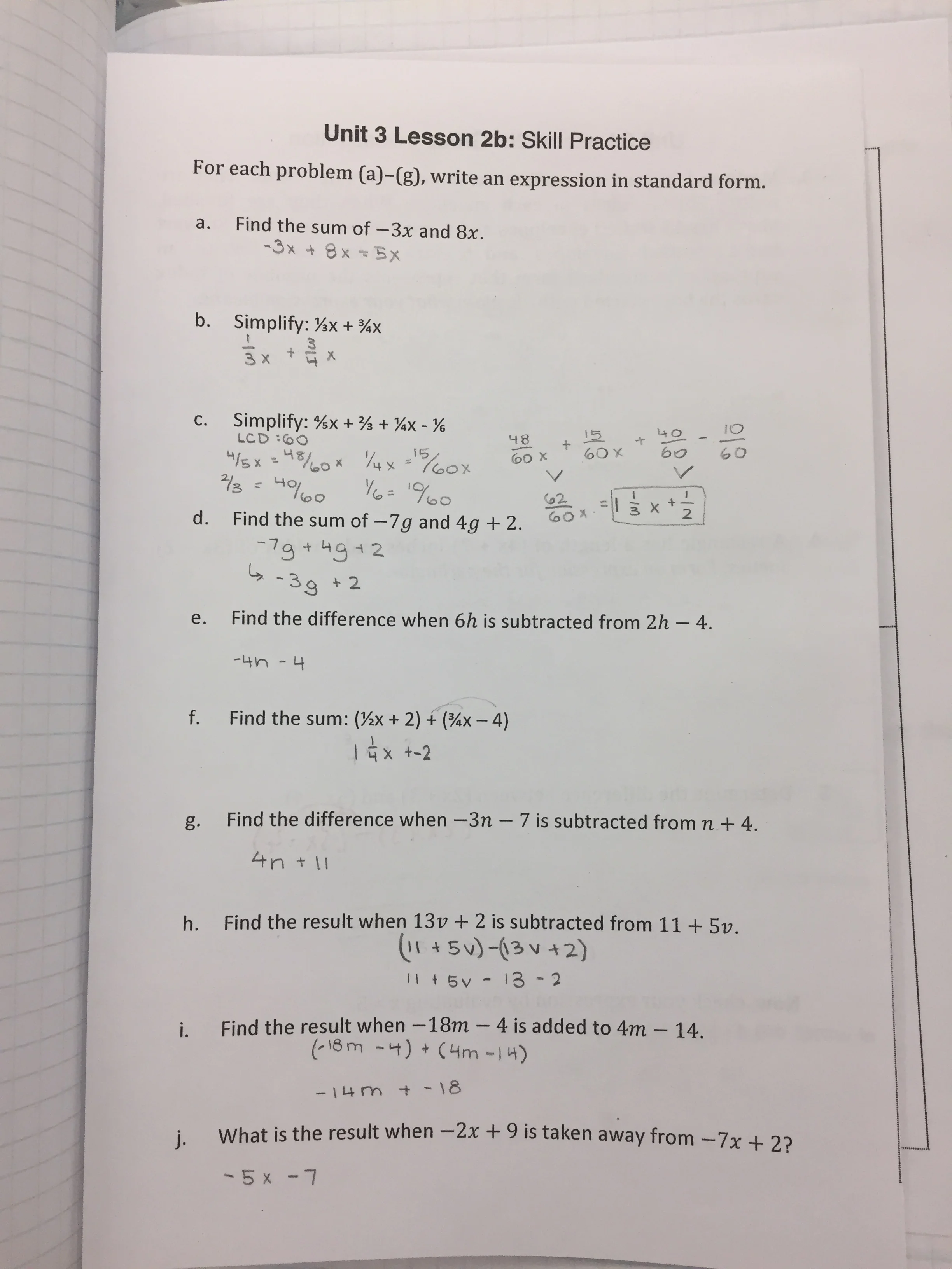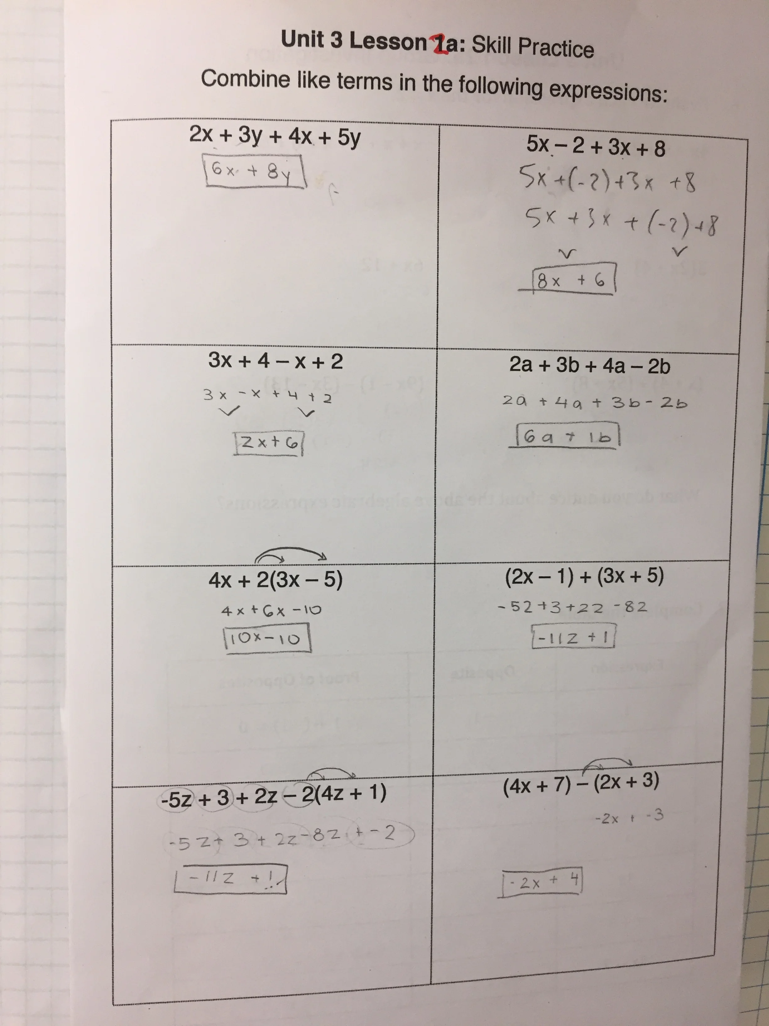 Unit 3 Lesson 2a: Add Expressions by Combining Like Terms